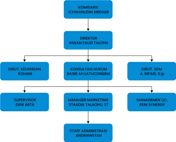 Setap Kepala Bagian dan Manager serta Staff bekerja sesuai jobdesk sebagai pedoman dan wewenang tanggung jawab masing-masing, semua ini kami terapkan ada lain untuk memenuhi kepuasan pelanggan, karena visi dan misi kami “Perusahaan Garment Berskala Nasional maupun Global yang berkualitas, Profesional dan Amanah”
